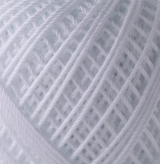 White remains a timeless choice for lacework and decorative crochet. The mercerised finish enhances the cotton’s durability while providing a gentle lustre that highlights intricate stitch patterns beautifully.