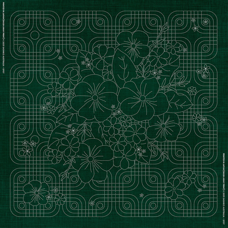 Sashiko Australian Native Flowers 3 - GREEN