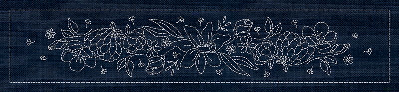 Sashiko Blossom Bouquet Runner INDIGO