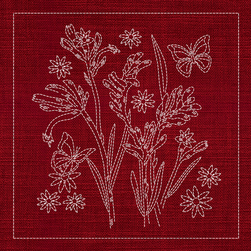 Sashiko Australian Native Flowers 1 - Cherry Red